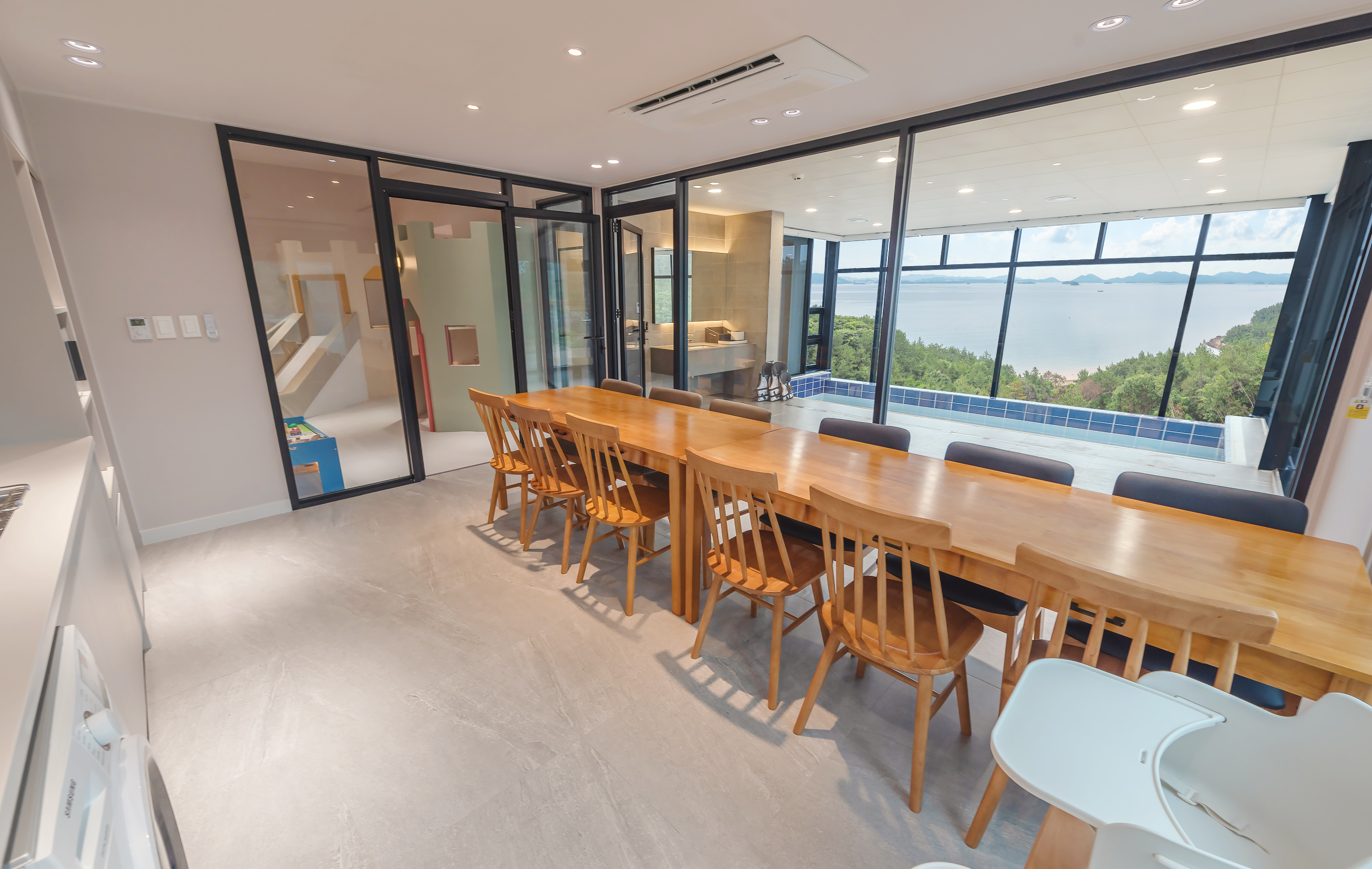 객실내 주방에 전기그릴 식탁이 준비되어있어 실내에서도 바베큐 파티를 즐길 수 있습니다.